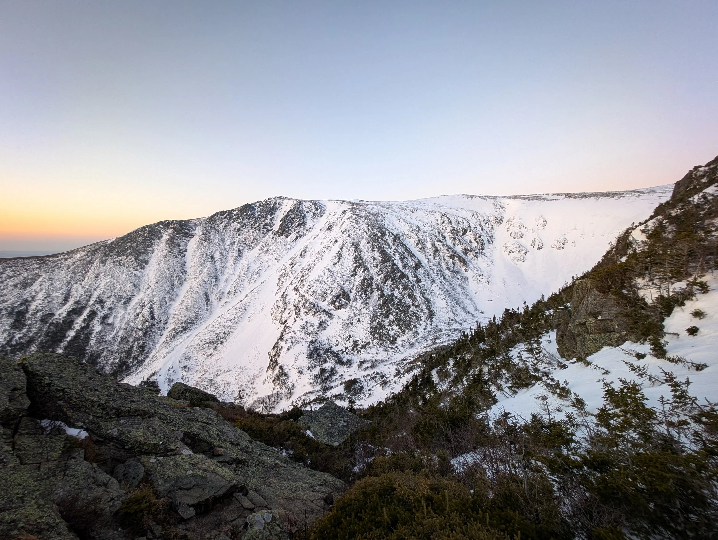 A glance over into Tuckerman’s Ravine with the prominent Boott Spur ridge.